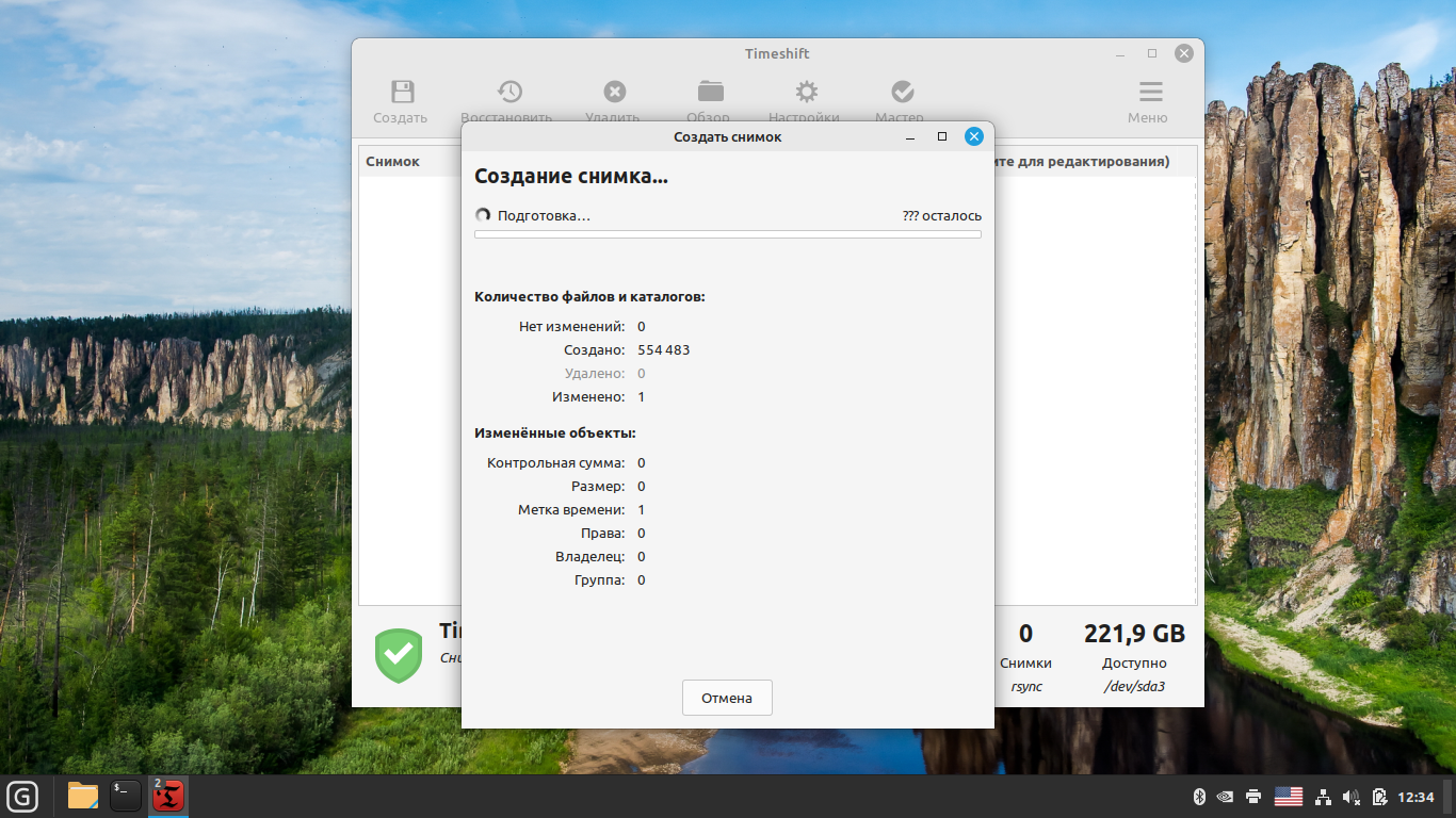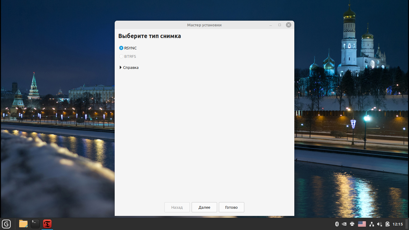У этой программы довольно типичный интерфейс программы для создания бэкапов. На первой вкладке Тип предлагается выбрать тип снимков: RSYNC или BTRFS. BTRFS используется только в том случае, когда ОС установлена на раздел с файловой системой B-Tree Filesystem. В домашних условиях это вряд ли используется. Поэтому отметьте флажок RSYNC. Почитать о его особенностях можно в этом же окне, развернув раздел справки: