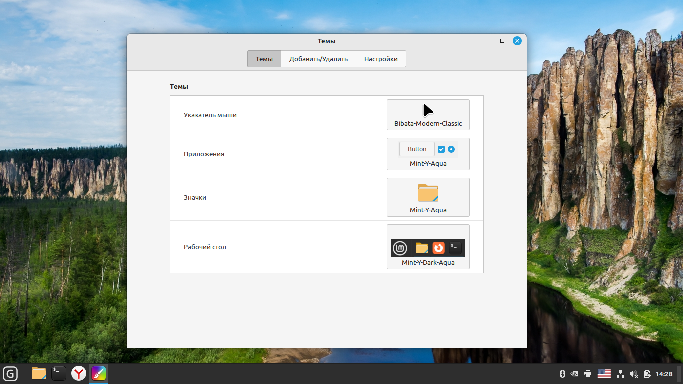 В появившемся окне с параметрами можно задать тему для каждого элемента персонально: изменить рамку окна, поменять указатель мыши, изменить кнопки и стиль окон: