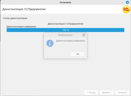 Платформа удалена. И, если была установлена одна платформа, то удалится и папка /opt/1cv8/: